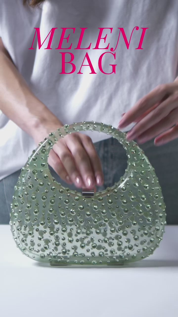 Our ultimate glamour bag. Meet our latest pink Meleni bag, perfect addition to a nostalgic 90's outfit. The versatile resin bag can be styled up or down depending on where you are going next.