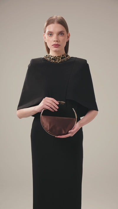 A symbol of return, belonging, and doors always open. The Key Eternity Clutch curves like a keepsake carried close, framed by a sculptural gold key, representing home, memory, and the quiet comfort of finding your way back. Its silhouette feels intentional and refined, balancing strength with softness. Understated yet meaningful, it’s a piece that speaks of connection, of places that hold you, and moments that welcome you home.