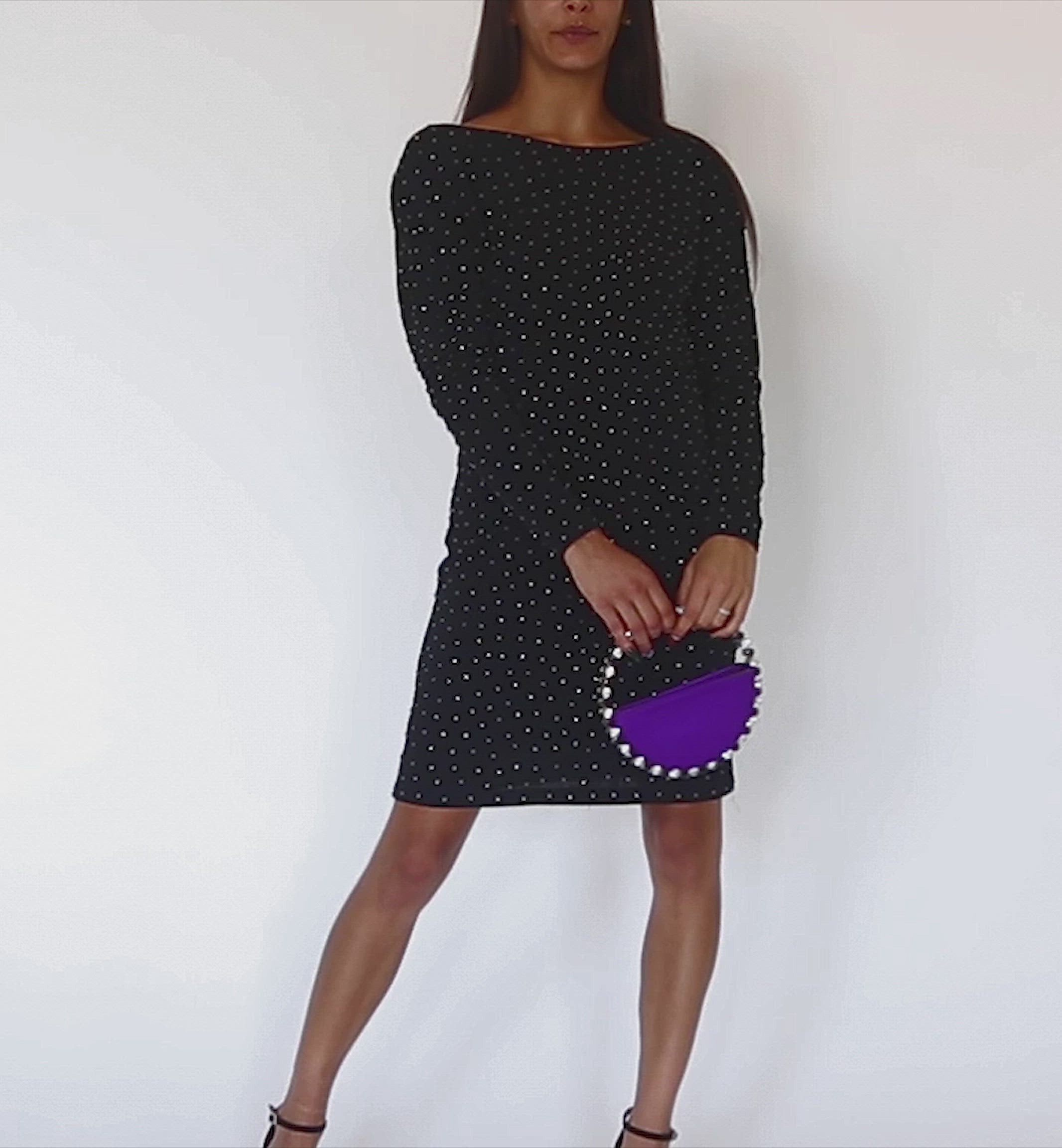 Inspired by the glamour, elegance and timelessness of a diamond ring band, our Eternity clutch is one of our most stunning pieces yet. The purple stones, mixed with the classic crystals, makes this clutch even more special. Pair this show-stopping red carpet bag with a gown or party outfit.