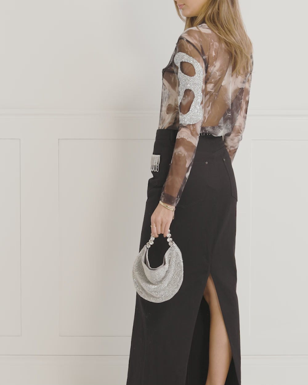 Introducing a new take on the hobo bag, your ultimate accessory for carrying all your essentials. With crystal detailing adorning the handle, this piece makes a bold statement that adds a touch of sparkle to any ensemble, ensuring you shine wherever you go!